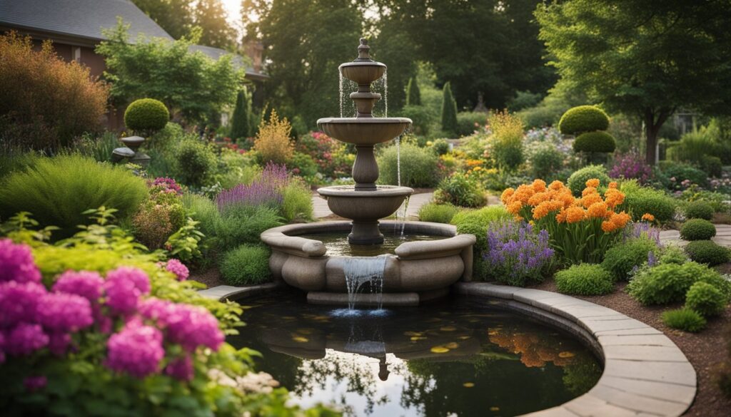 - Water features enhance the garden’s aesthetic appeal.